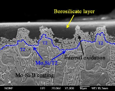 (7)在钼基体表面采用等离子弧喷焊技术,创新性地设计并制备出具有双尺度T2相分布的Mo-Si-B合金涂层,显著提高了钼基合金的高温抗氧化性能,为高性能Mo-Si-B合金涂层微观组织的优化设计与高温抗氧化性能的调控提供了关键技术。