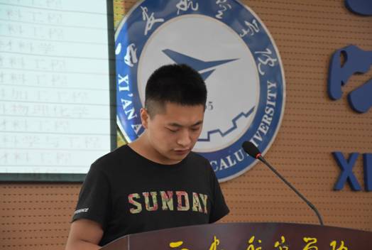 大会第三项:由受表彰学生代表朱昊发言。他提到考研心态非常重要,随时都应该保持一颗积极乐观的心。也强调了坚持的重要性,告诫到场考研同学要时刻提醒自己朝着自己的目标前进。
