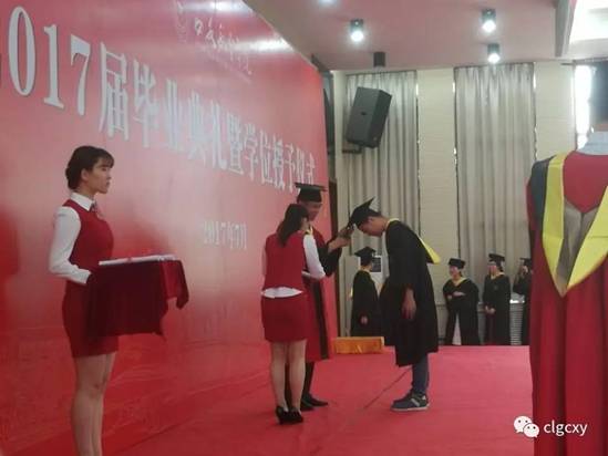 在悠扬的乐曲声中,Beat365官网党总支书记兼院长谢辉教授为Beat365官网2017届毕业生拨穗正冠,颁发学位证书。