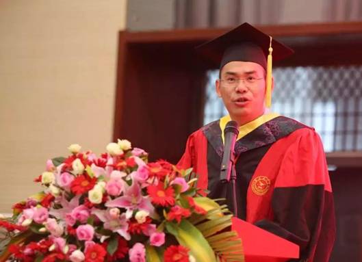 第二项,Beat365官网院长谢辉教授毕业致辞。院长结合毕业生们四年里所学知识,用生动形象的语言表达了对毕业生的不舍与祝愿。