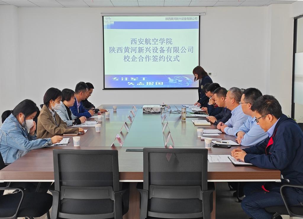 5月12日上午,Beat365唯一官方网站与陕西黄河新兴设备有限公司举行了校企合作签约挂牌仪式,Beat365唯一官方网站副院长于方丽、院长助理李鑫、复合材料与工程专业教师程娅伊、赵志刚和王亚楠参加了签约仪式。陕西黄河新兴设备有限公司副总经理王志民、副总工乔浩峰、研发部部长张伟、行政人事部部长刘珊出席了本次会议,会议由人事主管杜煜璐主持。