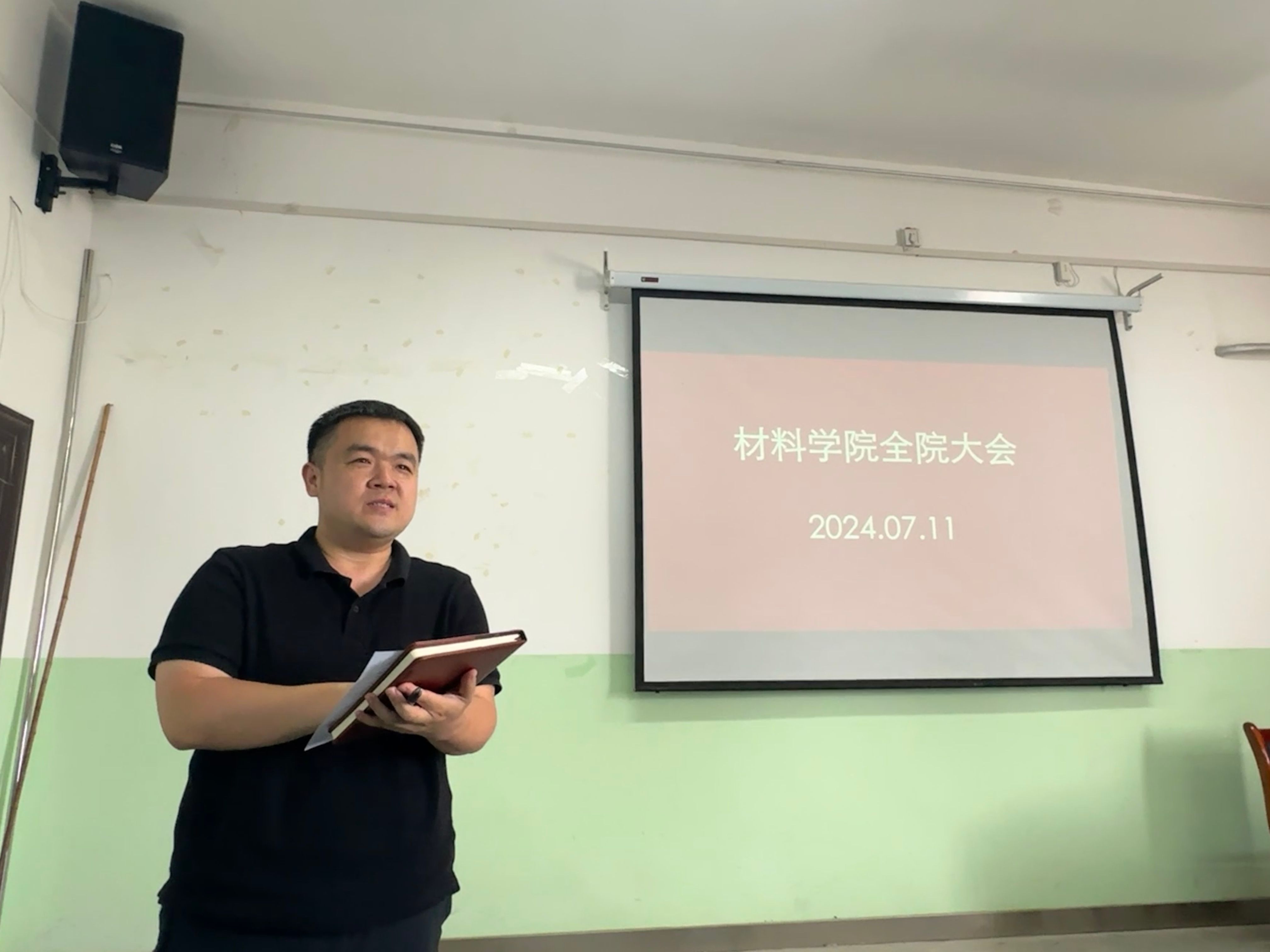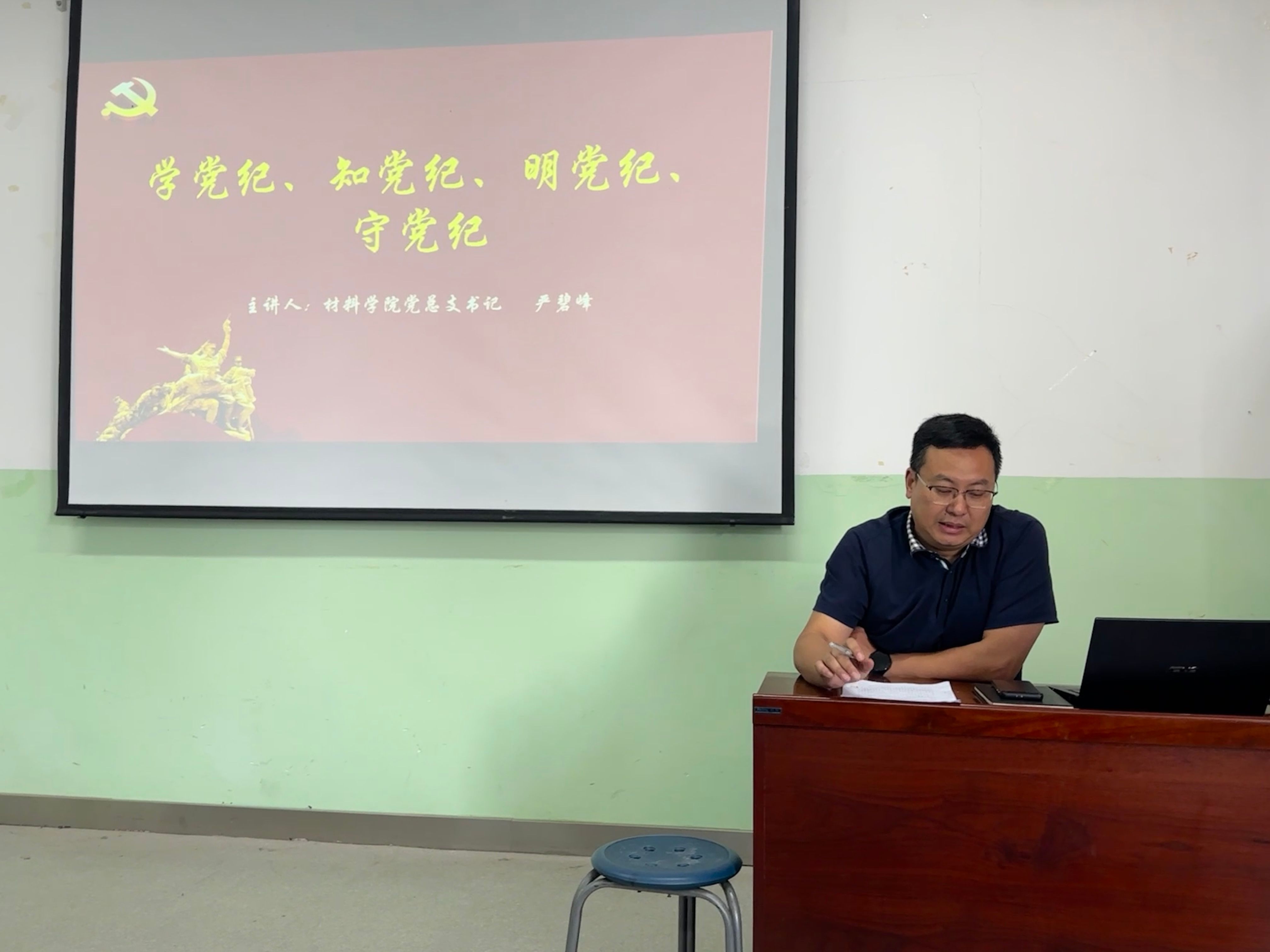 严碧峰书记对本学期党建工作进行总结,他指出我们本学期的工作有不少亮点,包括学生工作、工会活动、企业联培、支部活动等,都有比较亮眼的成绩,希望各位老师继续保持良好的工作作风,积极参与支部活动,并在假期能安排好工作、学习与生活,注意假期安全。