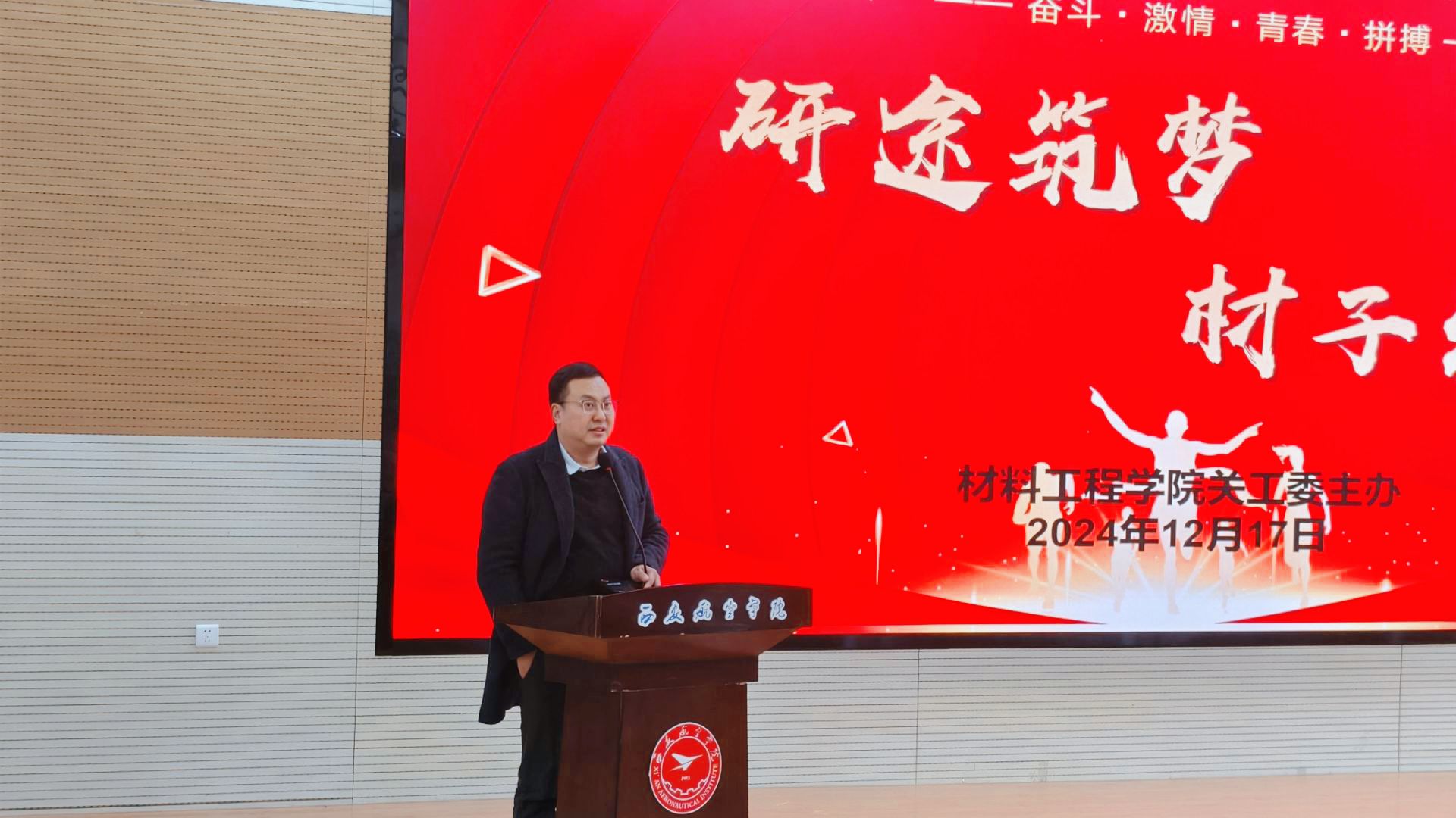 12月17日,Beat365唯一官方网站关工委在阶梯一报告厅举办“研途筑梦,材子出征” 2025届考研出征仪式,为即将踏上考场的考研学子们加油助威,注入强大的精神动力。学院党总支书记严碧峰、党总支副书记高均立、学工办主任雒亚男、团总支书记张立家、2024级辅导员胡欣雨等出席,仪式由2025届就业辅导员史倩茹主持,2025届考研学生参加。