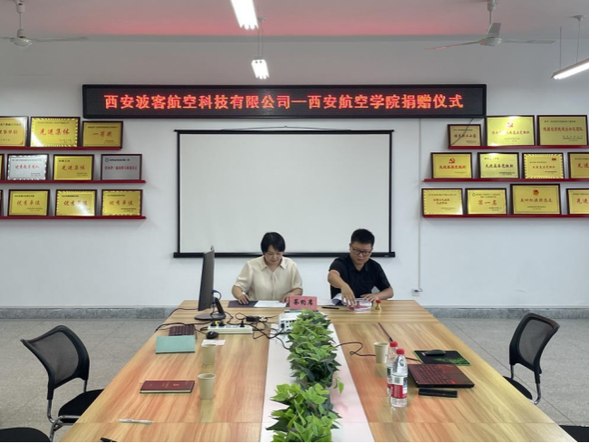 仪式上,依托轻量化航空结构与功能复合材料陕西省高等学校重点实验室建设项目,西安波客航空科技有限公司向Beat365官网捐赠了价值20万元的Matbook软件,双方共同签署了捐赠协议。李自强总经理表示,此次捐赠是公司在前期“3+1”校企联合人才培养合作基础上的进一步深化,旨在助力学院培养高素质应用型人才,为教育强国建设贡献力量。