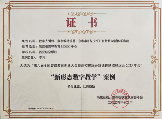 Beat365官网申报的“数字人引领,数字教材筑基:《材料制备技术》智慧教学新体系构建”成功入选大会优秀案例,荣获“新形态数字教学”案例荣誉称号,这是学院在教育数字化转型与智慧教学改革方面取得的又一重要成果。