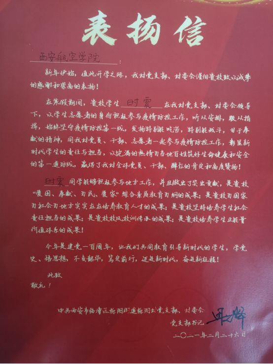 在抗击疫情的关键时刻,时震同学没有选择宅家,而是请缨出战,为打赢疫情防控狙击战贡献出自己的一份力量,诠释着当代大学生的家国情怀和责任担当。