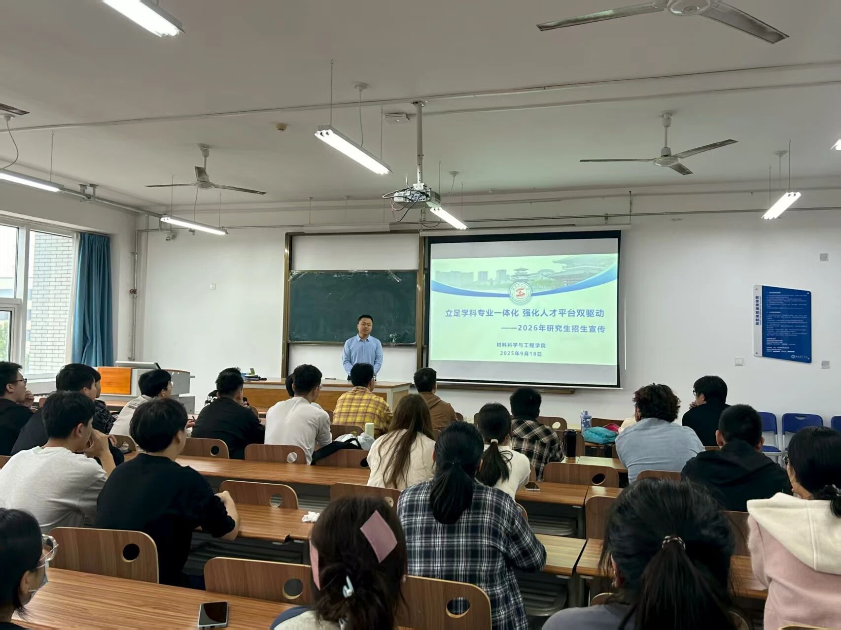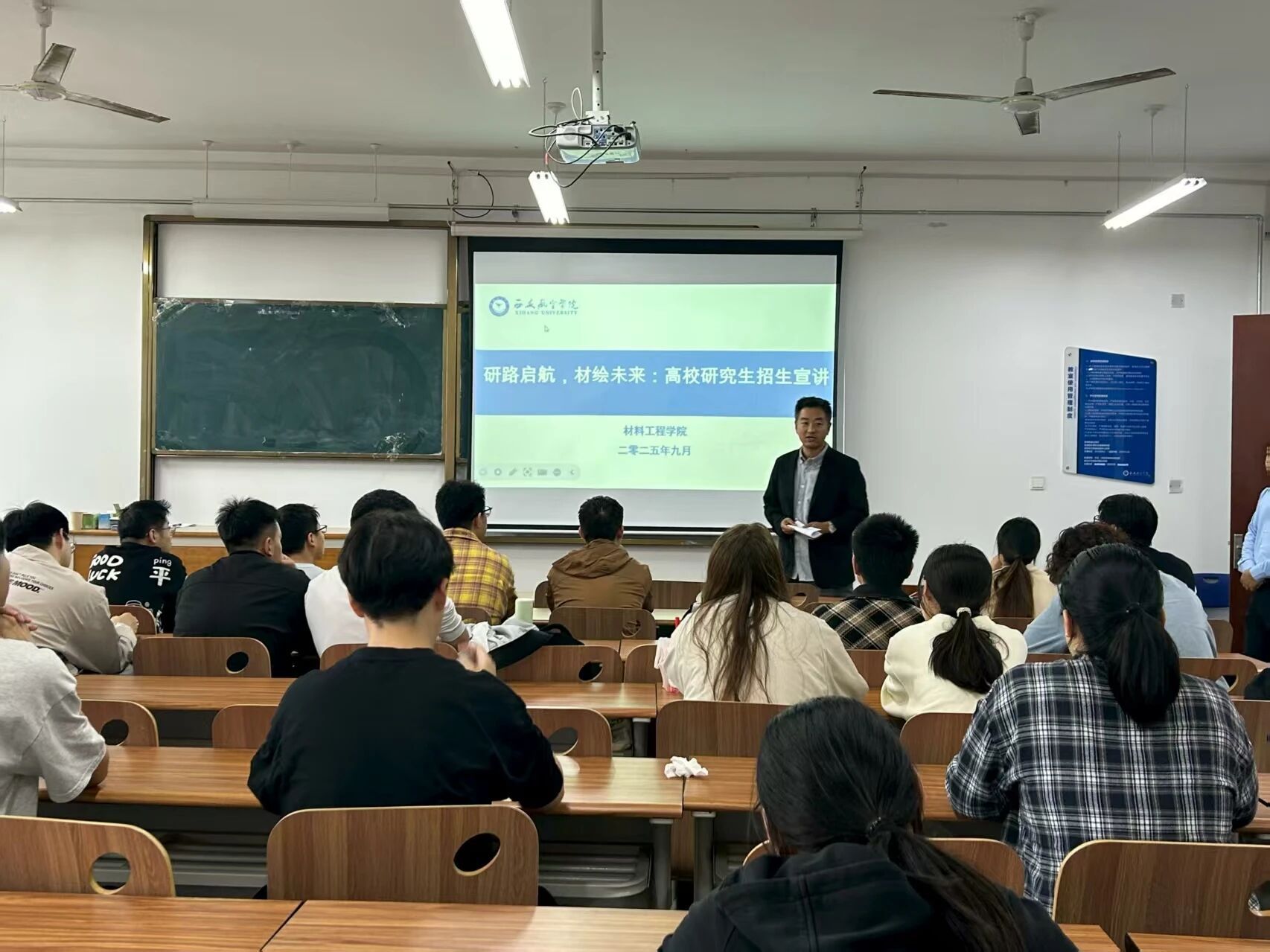 为帮助26届学生明确考研目标、掌握备考策略。9月18日,Beat365官网特邀陕西理工大学、西安建筑科技大学、西安理工大学三所高校的招生负责人与优秀导师代表,共同举办“研路启航,材绘未来——高校研究生招生宣传进材料学院活动。全院有考研意向的学生到场参与,现场氛围热烈。