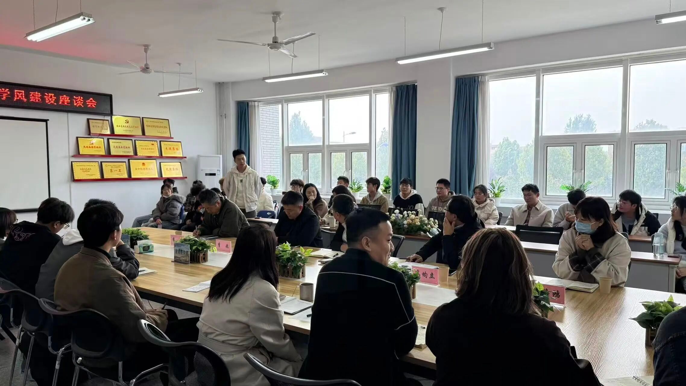 座谈会现场气氛热烈,师生交流坦诚深入。学院领导首先阐述了加强学风建设的重要性,表达了学院倾听学生心声、共建优良学风的诚意。
