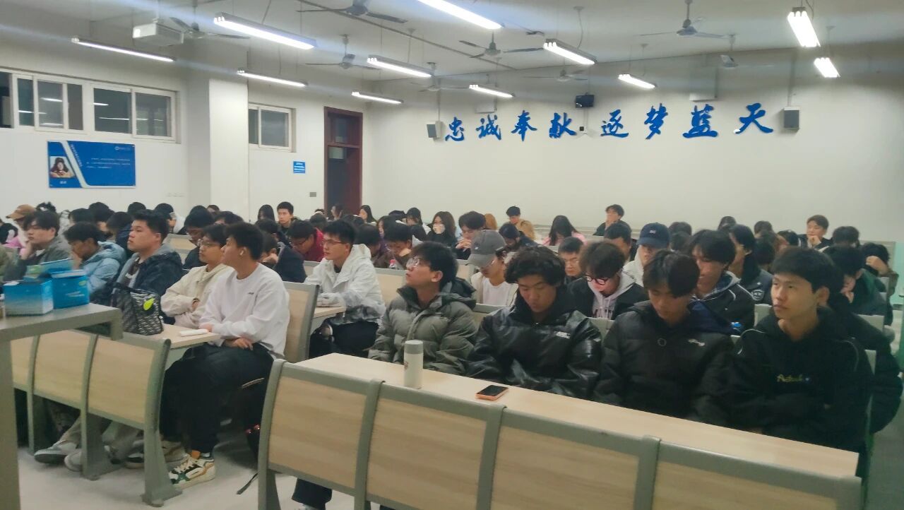 宣讲会伊始,宣讲团成员宋启翔结合新能源领域及环境工程领域相关案例,从双碳战略目标、生态保护需求、青年使命担当等维度,阐述了培育绿色低碳产业对于可持续发展、能源安全自主的重要性,尤其聚焦新能源产业在绿色转型中的核心地位与发展前景,引导同学明晰产业升级与专业深耕的内在联系。
