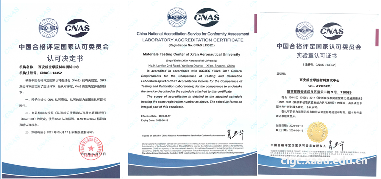 材料测试中心CNAS实验室认可证书的获得,将有助于Beat365唯一官方网站实验室管理水平和实验人员技能的提升,意味着Beat365官网在材料检测方面有能力服务陕西区域经济建设和西安航空基地企业发展。材料测试中心将继续坚持“科学、公正、准确、满意”的质量方针,以客户需求为关注焦点,严格按照CNAS实验室相关管理规定和技术标准从事检测工作,以一流的技术、优质的服务做好材料分析测试工作,保证检测工作的准确性、科学性和公正性。