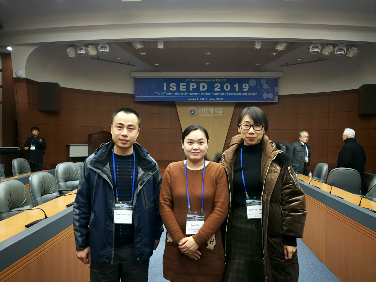 2019年1月4日至7日,应韩国鲜文大学李秀贤(Soo Whon Lee)教授的邀请,为促进Beat365官网教师国际学术交流,Beat365唯一官方网站于方丽、张海鸿、唐健江3位教师赴韩国牙山市鲜文大学参加了第20届生态材料加工与设计国际研讨会(the 20thanniversary of International Symposium on Eco-materials Processing and Design,ISEPD)并作报告。
