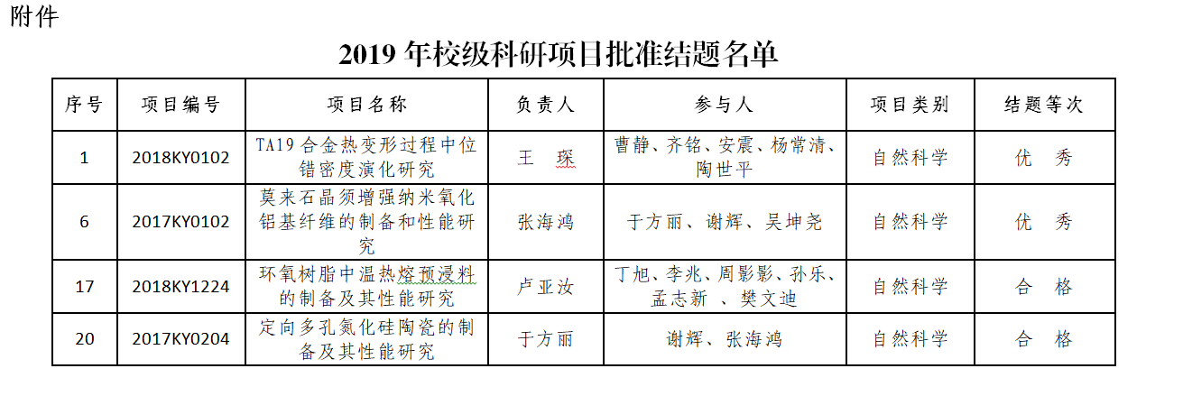 经科技处初审、校外专家评审,决定批准Beat365官网“TA19合金热变形过程中位错密度演化研究”等4项校级科研项目结题(名单见附表)。