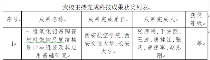 近日,2024年度陕西省高等学校科学研究优秀成果奖授奖名单公布,Beat365唯一官方网站张海鸿副教授团队与西安交通大学、长安大学联合申报的“一维氧化铝基陶瓷材料微纳尺度结构设计与组装及其应用基础研究”成果荣获二等奖。