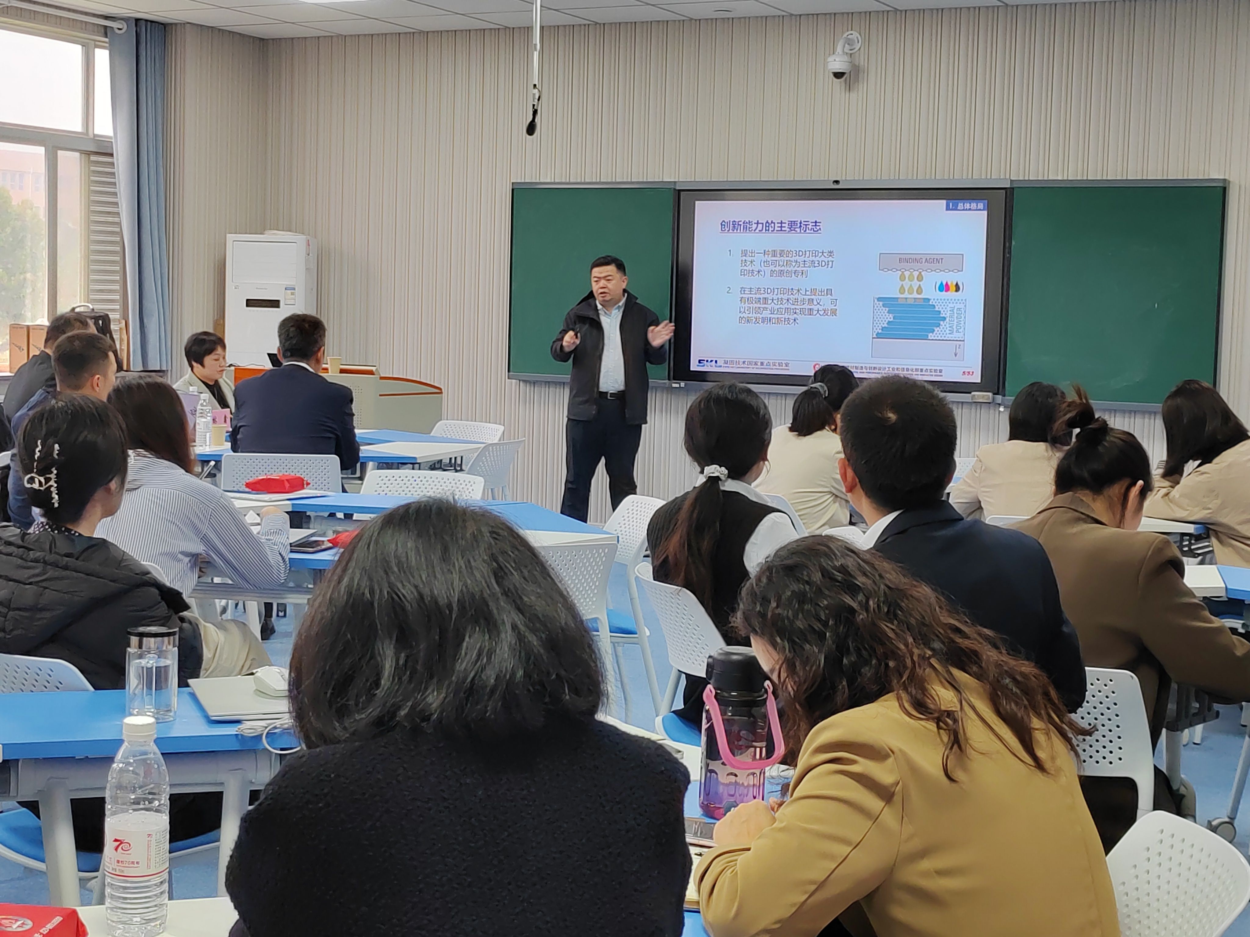 林鑫教授以《增材制造(3D打印)世界格局与发展趋势》为题系统分析了全球增材制造的技术竞争格局与创新能力分布,剖析了我国在该领域的发展现状与战略地位,并分享了相关成果在国家重大航空航天型号中的实际应用,为在座师生勾勒出增材制造技术在航空制造中广阔的应用图景。